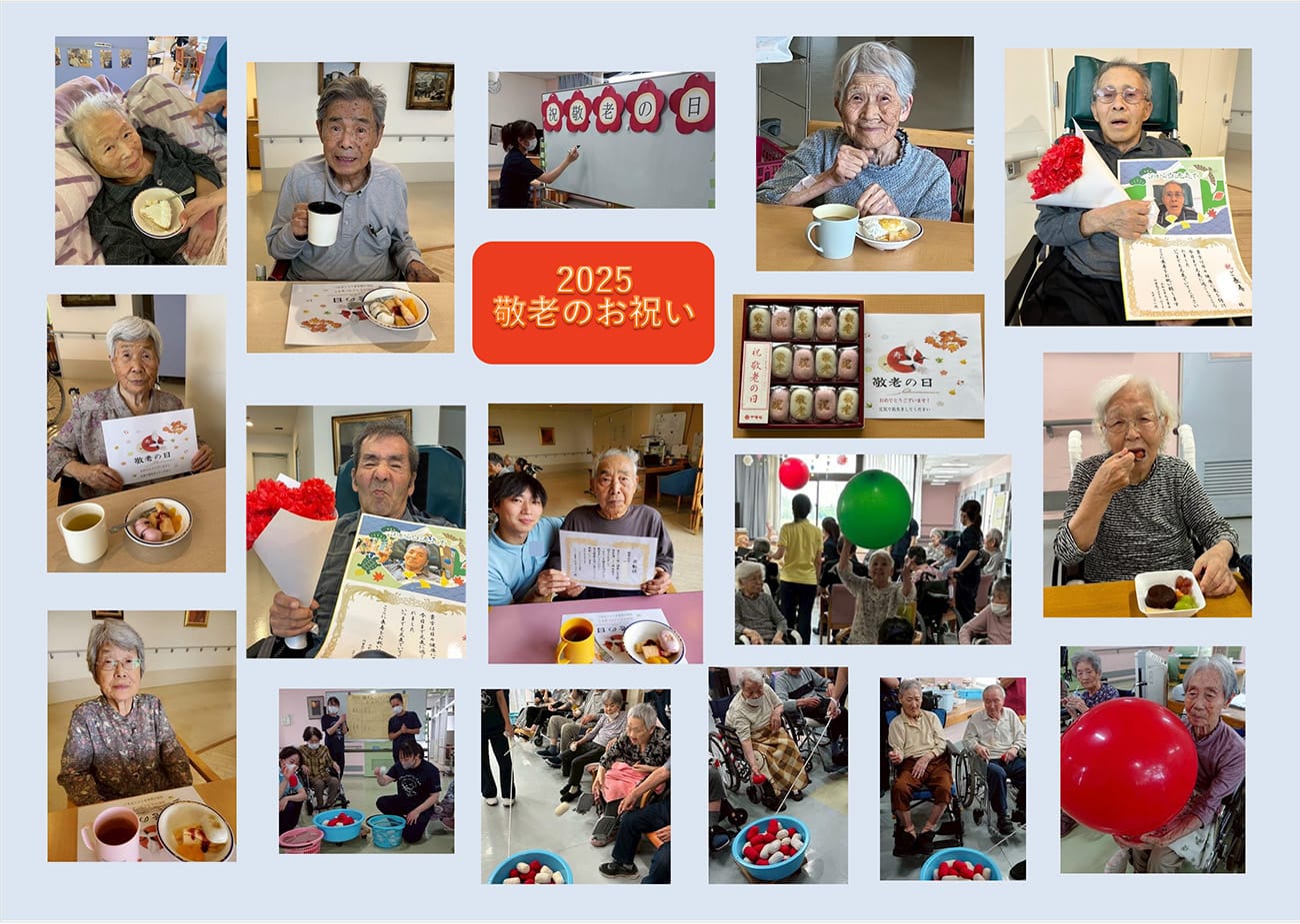 長年にわたり社会を支えてこられた入居者の皆様へ、感謝と敬意を込めて敬老会を開催しました。それぞれのフロアで工夫を凝らした催しを楽しんでいただき、特別なおやつでお祝いしました。皆様の笑顔に包まれた一日となり、職員にとっても心あたたまる時間となりました。
